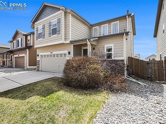 Better than new! Stunning two-story home in the desirable Willowind at Stetson Hills neighborhood, meticulously and lovingly maintained with quality updates throughout. This beautifully refreshed home boasts new flooring, an elegant new banister and railings, a Class 4 roof (2023), new furnace (2023), and central A/C. The remodeled kitchen shines with granite countertops and updated stainless steel appliances, flowing effortlessly into the dining area, which opens to a deck overlooking a fenced backyard with raised flower beds and inviting patio space. The bright living room features soaring vaulted ceilings and electric blinds, complemented by a dramatic staircase. A tastefully updated powder bath completes the main level. Upstairs there are 3 bedrooms with the primary bedroom offering a spacious walk-in closet and attached full bath with double vanities and an oversized soaking tub. The two additional bedrooms share another stylishly remodeled full bath. The unfinished basement includes the laundry area, including a washer and dryer, and provides ample room for storage, crafts, or future expansion. The generously sized two-car garage features overhead storage, work bench, additional overhead lights and an upper glass panel for abundant light. Enjoy the convenience of this unique lot backing directly to the community park and playground. Quiet yet conveniently located, it's an easy commute to Schriever and Peterson. Move-in ready and waiting for you!