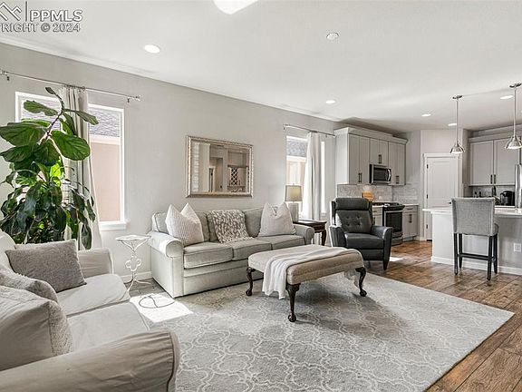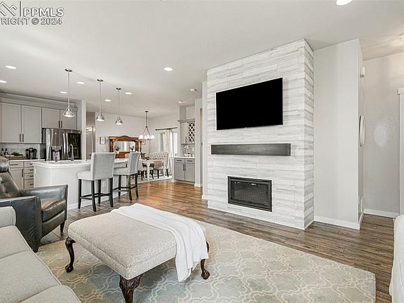Welcome to Your Dream Home Located in the Prestigious Renaissance at Indigo neighborhood. This Beautiful Residence is Ideally Situated Close to Local Schools, the Scenic Stetson Hills Parks and Open Spaces, and the Vibrant Powers and Marksheffel Corridors, Offering Numerous Shopping and Dining Options. Built by Classic Homes, this Property Exemplifies Coveted Main-Level Living, Providing Over 1,500 Square Feet All on One Level with a View of Beautiful Pikes Peak. Step Inside to an Open Floor Plan that has Been Immaculately Cared For and is Truly Move-In Ready. The Home Features Tall Ceilings and Luxury Vinyl Plank Flooring, Creating a Spacious and Elegant Atmosphere. The Well-Appointed Kitchen is a Chef`s Delight, Boasting Quartz Countertops, a Large Island, Stainless Steel Appliances—Including a Counter-Depth Fridge with a “Knock” Light-Up Feature and Ice Maker—and a Gorgeous Decorative Tile Backsplash. A Useful Dry Bar Area is Perfect as a Coffee or Beverage Bar, Enhancing the Space for Entertaining as it Seamlessly Opens Up to the Living Room. The Living Room is the Heart of the Home, Complete with a Cozy Gas Fireplace Adorned with an Elegant Tile Façade. Adjacent to the Kitchen is the Dining Area, which Offers a Walk-Out to a Side Covered Patio, Ideal for Alfresco Dining and Relaxation. The Primary Suite is a True Retreat, Featuring a Walk-In Closet and an Attached ¾ Bath with Quartz Countertops and a Generously Sized Walk-In Shower. The Home Also Includes a Two-Car Attached Garage with a Tall Ceiling and a Window Allowing for Natural Sunlight. Enjoy the Outdoor Spaces this Home Offers, Including a Courtyard Patio with Privacy Side Fencing, and a Covered Front Patio. The Neighborhood Green Areas Provide the Perfect Setting for Walking Your Dog and Enjoying the Outdoors. Experience Lower-Maintenance Living, Modern Amenities and Ultimate Convenience. Schedule Your Private Tour Today and Discover All that this Exceptional Home Has to Offer.