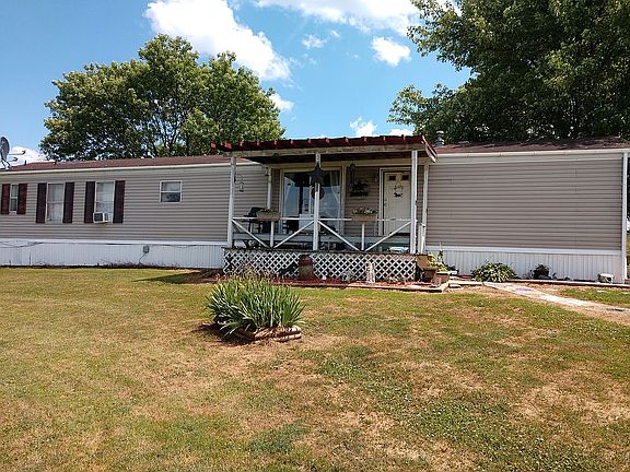 Manufactured home with edition and front porch. Has a full laundry room, 2 full bathrooms, heat with propane . Sits on 5 1/2 acres , breath taking view. New flooring in kitchen, living room and bathroom. New appliances, and New electric service at the electric pole with new box and breakers. Sewer pumped last summer. 3 sheds for outdoor storage, and large garden. No land contract or payments at this time.