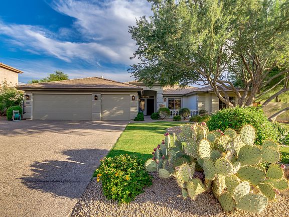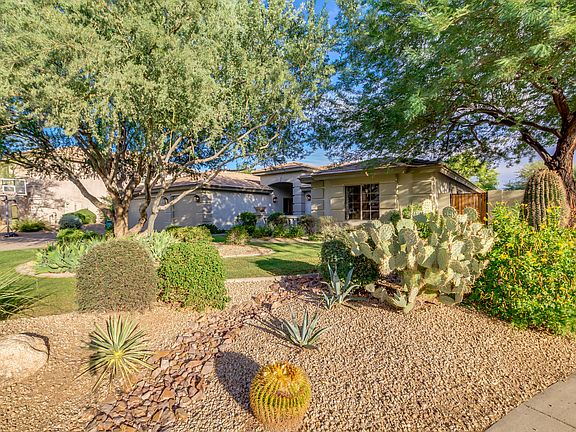 Premium North/South lot at the end of a cul-de-sac and siding a big grassy common area. Nothing but Privacy all around this home. Lush show stopping curb appeal doesn't stop at the front door. Enter inside and notice all the oversized living spaces. The kitchen, island cooking area and family room with fireplace are laid out for maximum enjoyment. Chef's kitchen with lots of cooking spaces, double ovens and a built in microwave. Split bedroom floor plan with master on one side and 3 bedrooms on the other side. Plus a great office/den. Lots of tiled flooring and plantation shutters throughout. The back yard is beyond big and spacious. Plenty of room for a big pool or, just use your imagination. The 64 foot long patio provides lots of shade and entertaining areas. Close to schools/shops.