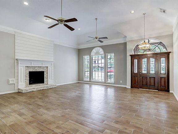 A beautiful remodeled one story home in Kleinwood subdivision. This home backs up to Meyer Park and enjoys all the wonderful park views from the back door. You are welcomed into an open floor plan with high ceilings, crown moulding, and a gaslog fireplace with a shiplap wall to cozy up to on winter evenings. The home has gorgeous wood tile floors throughout the main living areas and carpet in the bedrooms. The kitchen has stainless steel appliances and granite countertops. The oversized primary suite is splendid with full dual bathrooms and closets. Luxury at its finest! Need privacy for work or hobbies? This home boasts a perfect study, workroom or gameroom above the garage that comes complete with a half bath. Entire Interior of Home Remodeled 2018. SS dishwasher, microwave, oven, freestanding gas cooktop range and disposal installed. Beautiful cabinetry, shower tile, wood tile floors and carpet replaced. Entire interior of home repainted. Roof installed in 2018.
