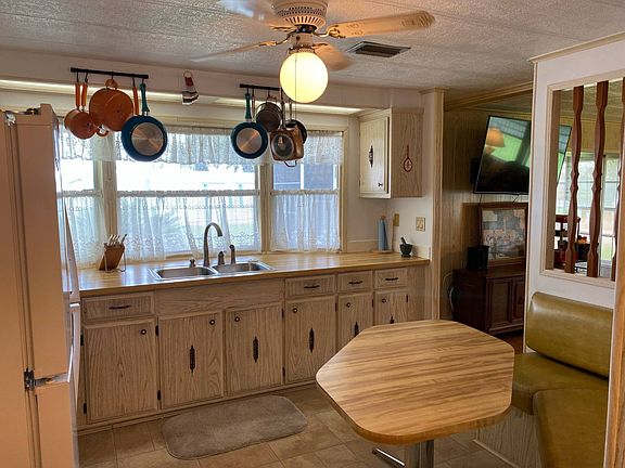 Just Listed $29,000 Turnkey A 1980 turnkey home with 1,144 sq ft of indoor living space. This home sits on a large pie shaped lot with a front covered porch, side driveway, carport and a storage shed. The kitchen has plenty of cabinets and counterspace. Nice sized pantry for extra storage and a large bay window giving you extra lighting. The kitchen has a view of the large living room and dining room. The sliding glass door in the living room leads out to the front enclosed lanai. Both bedrooms are large with walk-in closets. The guest bedroom has a tub/shower combo. The master bedroom has a stackable washer/dryer and an ensuite bathroom. The bathroom features a walk-in shower, double sinks and ceramic tile flooring. The floors in the master bedroom have been replaced with new wood, but will need top flooring or carpet. New AC October 2020. Beautiful water view that is waiting for someone to enjoy! This home is move-in ready and waiting for your special touch. Call today to make this your Florida dream home! ACT FAST & CALL TODAY!! Don't forget to ask about the FINANCING available on this home. Colony Cove is an age qualified (55+) five-star resort community of manufactured / mobile homes. The "Cove" boasts 5 clubhouses, 5 heated pools, a riverfront pavilion and private fishing pier, a private marina, a fenced dog park (very pet friendly), tennis, shuffleboard, new pickleball courts, 2 new fitness rooms, 24-hour patrol, clubs for every interest, and much more. There are daily planned activities throughout the park. Bottom line, if you get bored here, it's your own fault!! The lot rent in Colony Cove is based on the homes' location. While the monthly rent may not be the lowest around, it's by far the best value for the money. Not only does the monthly rent cover all of the amenities of the community listed above, it also covers almost all other monthly expenses such as; water, sewer, trash pickup, all property taxes, lawn maintenance. . .pretty much every monthly expense except electricity and internet. The current lot rent on this home is estimated at $1,011.64 per month. All listing information given to us is considered appropriate and reliable but always recommend Home Inspections by independent companies who have a background and thorough understanding of manufactured homes. We cannot guarantee the accuracy of information given to us or the condition of the home. Lot rents are determined by the community office not our company.