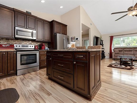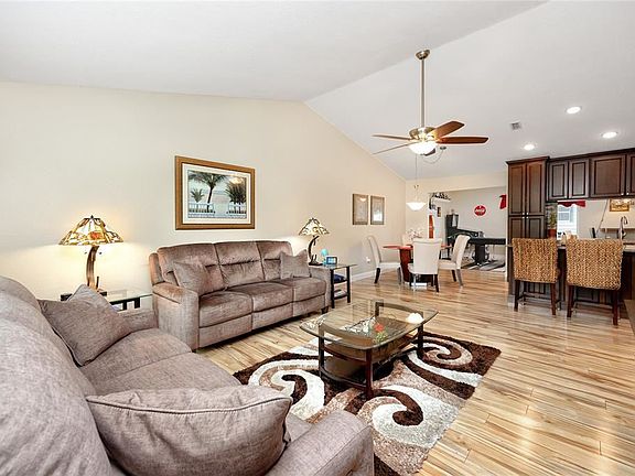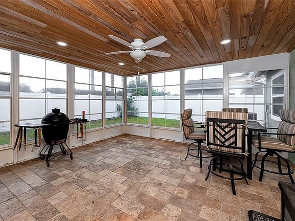 WOW! Walk into this lovely home and notice the brand new windows! (2021) The wood laminate flooring is a light color contrasted by the espresso cabinets. The floor plan includes a family room (which can double as an office) as well as a living room. The kitchen opened up and is a spacious area for entertaining at the island. Beautiful Granite and Stainless Steel Appliances make this room a chef's dream. The Kitchen remodel and appliances, flooring, baths and textured ceilings were all done 6 years ago. Brand New water heater installed this year. PVC Fencing, Gutters and Back Porch all completed in 2021. French doors with internal blinds lead out to the back enclosed porch with vinyl windows, cypress ceiling and attractive pavers. A fantastic place to host parties. Added features include reverse osmosis and water conditioner softener. The shed in back is great for added storage space. Cordless faux wood blinds are in every room. The front porch has a cedar ceiling and is screened for security. Cameras, Doorbell and Alarm will remain with the home. Smart Thermostat. A/C replaced in 2017.