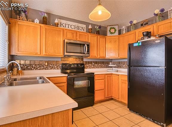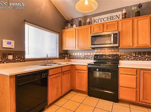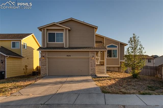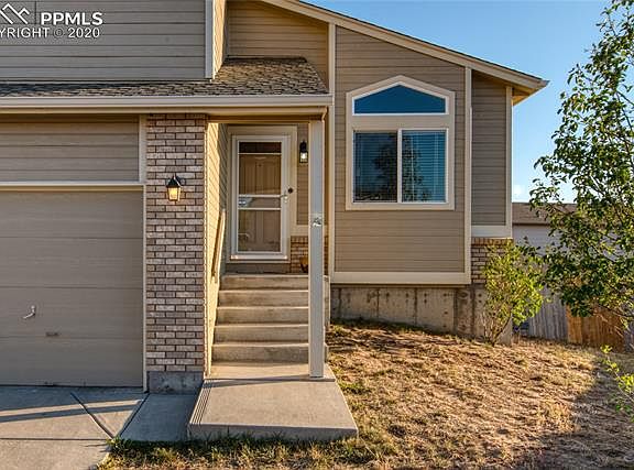 Spacious home with open and bright floor plan. Enter in to the spacious living room with vaulted ceilings and continue back to the kitchen with its large eat-in area, bay window and plenty of cabinet space. The upper level features a master suite with an attached full bath including a double sink vanity and soaking tub. Also on the upper level you will find two additional bedrooms and a second full bath. The kitchen overlooks the large lower level family room with a gas fireplace and a walk out to the back patio. Large fully fenced backyard with plenty of room for entertaining! Convenient to parks, shopping and Fort Carson.