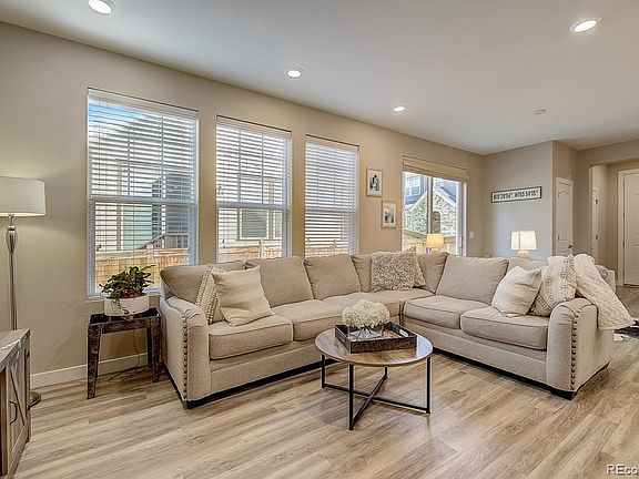 Fall in love with this inviting 2018 townhome. Lives like a single family! Refreshing, bright, open floor plan with taller 9 ft ceilings. Spacious kitchen with beautiful quartz countertops and a large island. Huge master bathroom with walk in shower. Unfinished basement to use for a home gym or finish into extra living space! Side yard is landscaped with a private patio area. Neighborhood is convenient to the Southlands shopping center, restaurants, and E-470. This home is impeccable and move-in ready!