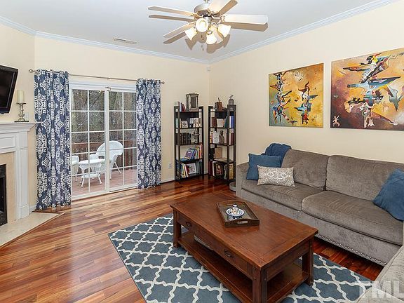 Beautifully maintained home! Family room with gas log fireplace open to deck. Kitchen features 42" cabinets, corian counter tops, and SS appliances. Lovely hardwoods on the first floor! Master bedroom is spacious vanity, shower and garden tub. Great dimensions on secondary rooms. Downstairs can be third bedroom with fireplace or could be used as bonus room. So many options! HVAC dual zone system replaced in 2018, large unfinished storage room/workroom in basement. Great Brier Creek neighborhood!