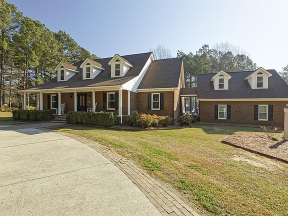 Stunning custom built, 3BR/3BA + flex room & 2 bonus rooms; all brick home w/no HOA; unique woodwork throughout home; 2021 new energy-efficient windows; 2018 roof; 2023 new kitchen flooring, quartz countertops, backsplash, stainless steel sink & faucet; 2021 updated master & guest baths; beautiful front u-shaped driveway; 20 mins to downtown Raleigh; 15 mins to Fuquay; 30 mins to Clayton; large 1.26 acre lot; refreshing above-ground pool. Plenty of indoor and outdoor space for entertaining. All interior doors are 36" wide. There is an additional 432 heated sq ft of finished space above the detached garage.