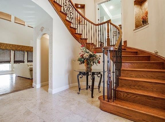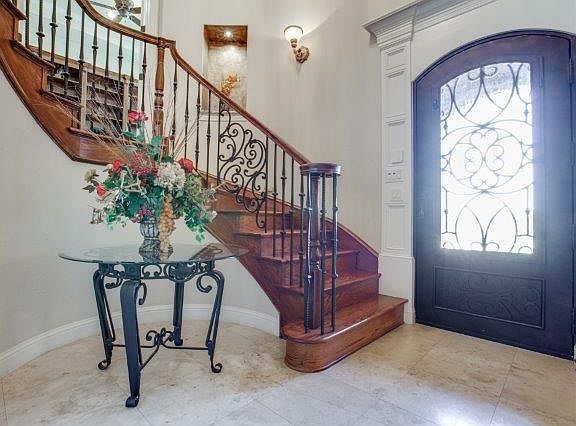 Travertine, 16 SEER A-C, Efficient Insulation, WBF, Custom Cabinetry, Gutters, Gourmet Kitchen, SS Appliances, Pot filler, Granite Counters, Porcelain Tile, Walk in Pantry, Jetta Jacuzzi, oversize shower, Walk-in closets, Office or Study, Decorative Railings, Crown Molding, Pre-wired Security System, Cat-5 cable, 95% Masonry ext, Large Garage Doors, Gas @ Patio, Intercom system, Media room, Hand Scraped floor, Pool Bath, Set up for pool