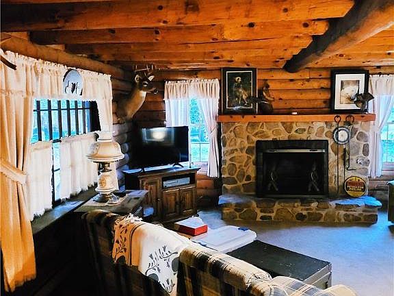 This Lincoln Log Home was built in 1977 and is a "true" log home. The rustic design offers open beams and walls. The photos best describe the charm of this 4 bedroom home, all situated on 8 acres with a running stream. While offering charm, the home has some challenges. The home needs a new roof and the rear porch needs repair. The property is serviced by a septic system and a Spring water supply. A diamond in the rough. This property is being sold in an "as-is" condition. The sale of this property includes 4 parcels which total approximately a little over 8 acres.