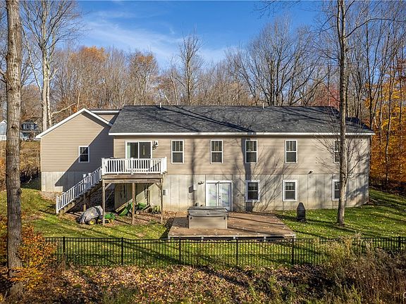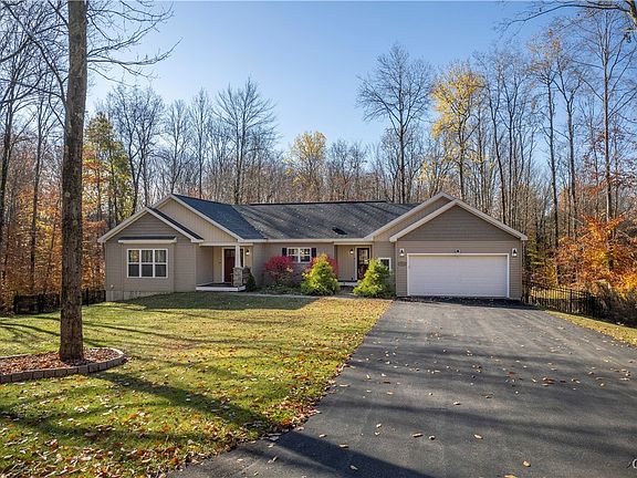Nestled in a charming neighborhood, this 2017-built ranch-style home offers the perfect blend of modern convenience and serene, spacious living. Situated on a full acre, the property boasts an open-concept floor plan across 2,007 square feet on the main level, expanding to 3,007 square feet with the mostly finished basement. Located in the Oriskany School District. The first floor includes three bedrooms and two-and-a-half bathrooms, ideal for both easy living and entertaining. The expansive eat-in kitchen features a generous island and flows effortlessly into the dining area, where sliding glass doors lead to a new upper deck overlooking the fully fenced yard. The primary suite is a standout, with a walk-in shower and walk-in closet. It also has a first-floor laundry and a two-stall attached garage. Durable luxury vinyl flooring throughout adds both style and practicality. Downstairs, the walk-out basement invites relaxation, featuring a home theater, office, and a newer hot tub on the back patio for ultimate comfort. Wired with high-speed fiber optic cabling, this home is ready for remote work and seamless streaming. Don’t miss out on this wonderful property!