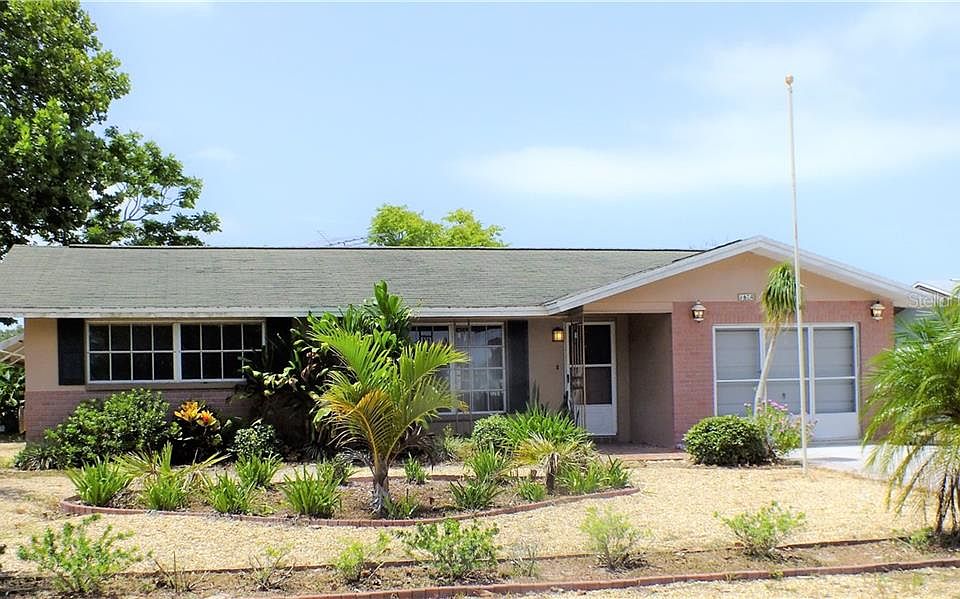 Priced for a quick sale: 2 Bedroom 2 Bath Masonry Home Located in Jasmine Lakes- Port Richey, minor tlc needed. Out Front: a Large Double Driveway To Accommodate Several Vehicles. Enter Through a Shaded Open Front Porch Into the Spacious Living Room. Notice Tile Floors Throughout the Home Except Bedrooms. Kitchen with Smooth Top Whirlpool Range, and Refrigerator. Plenty of Counter Space and Cabinets. Adjacent Family Room With Breakfast Bar. Adjacent Dining Room Area, Too. Open the Sliders and Step Out Onto the Florida Room. Sliding Windows Afford the Opportunity to Open Up Two Sides and Enjoy Cool Breezes. Step Out of the Florida Room and Into Your Tree Shaded Paradise Out Back. There's Even A 9x10 Shed for Added Storage. Back Inside, Your Main Bath Has a Tub with Shower. Your Master Bedroom Features its Own Private Bath with Shower, Too! Plus One More Bedroom. Check Out Your Oversized Garage. Complete with Built In Work Bench Space, With Drawers and Cabinets for All Your Tools and Supplies. The Garage is Also Equipped with a Laundry Tub, and Washer Dryer Hook-ups. The Garage Also Opens to a Tri-Fold Screen Arrangement Allowing Cross Ventilation Here As Well. At This Price, You'll Be Able to Make Some Updates of Your Own! All This in an Established Neighborhood. Just Minutes to a Wide Variety of Dining and Shopping on US 19, Plus Embassy Crossing Shopping Center and Regency Square Just to Name A Few. And Numerous Nearby Parks Including Lake Lisa Park and Werner-Boyce State Park. Call Today!