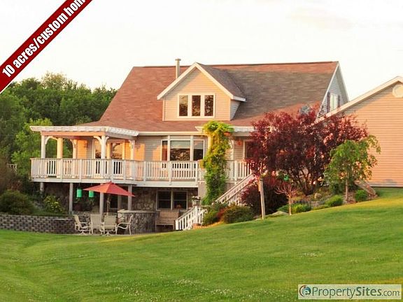 Beautiful country setting on 10 acres. This home sits off the road and has scenic views from every corner of its wrap around porch. It has an attached 2 car garage and detached 24 x 28 garage. The master suite has tiled shower, soaker tub, double vanity, and walk-in closet. Full finished Basement has 4th bedroom, office, and family area with access to patio and backyard. Updates include a new roof and new well pump in 2012, new water softener in 2011, newer carpet, and second drainfield that was added in 2009. A home warranty will be provided to buyer by seller.