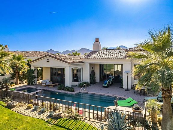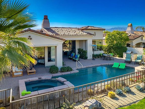 Welcome home to Toscana CC in Indian Wells. This pristine Amalfi 622 plan on the Jack Nicklaus North 18-hole Golf Course is move-in ready. You, your friends, and your family will be sure to enjoy the views from the large outdoor patio, perfect for entertaining, where you can watch the golfers, fire up the built-in Grill, dine al fresco, enjoy a libation, watch the outdoor TV, and frolic in the pool & spa. As you enter through the gated front courtyard, you'll pass another entertaining area with a fire pit, fountain, custom lighting, and artificial grass for easy care. Your Casita has a private entrance with a refrigerator, ice maker, sink, and built-in media center. Entering the main home, you'll appreciate the custom built-ins, stonecast fireplace, stunning wet bar, and the open Great Room, which showcase the views. Dine in the formal Dining Room or at the kitchen island in the fantastic Chef's kitchen. The handsome primary bedroom suite has those same great views, and leads to the primary bath with dual closets, dual sinks, vanity, soaking tub, and spacious shower. The two additional guest rooms are just the right size. There is an office area just off the laundry room which has plenty of storage. The entire home has tiled floors so no carpet! There is a two car plus golf cart garage with epoxy floors and built-in storage.