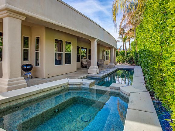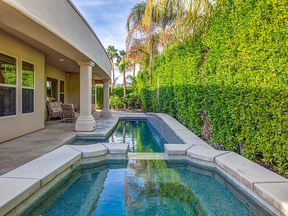 Check out this exceptional value at Montelena in Indian Wells that has high ceilings, an open floor plan, multiple entertaining areas, and a great separation of the master suite from the other two Ensuite bedrooms. As an added bonus, Montelena owners have direct access to Miramonte Resort & Spa and receive a 20% discount off dining and services. Formal entry leads to expansive living and dining areas with high ceilings, doors that open to the interior courtyard and an easy connection to the large kitchen and casual family room that lead to the private pool and spa. The kitchen is styled up with stainless steel appliances, a generous amount of cabinets and drawers, a large detached island and a casual dining area that opens to the family area anchored by a gas fireplace and styled up with a media center. This is a terrific floor plan for both relaxing as well as entertaining! Master Suite offers high ceilings, direct access to the pool and spa, large walk-in closet, and a private bath with dual sinks, generous walk-in shower and separate tub. On the other side of the house are Junior Ensuites Two and Three each with views and their own private bath. Separate powder bath, too!