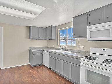 Charming 3 bedroom, 2 full bathroom, single story home in the community of Riverside! Enjoy an open floor plan with lots of natural light and an inviting fireplace. The kitchen offers light gray cabinetry, white appliances, and elegant wood flooring. The main living area features the living room, dining area, and sliding door to the outdoor covered patio. The primary bedroom offers spacious closets, a stylish bathroom with a shower-in-tub. Additional property features include the 2 car garage and no HOA. Convenient to area schools, markets, and major freeways!