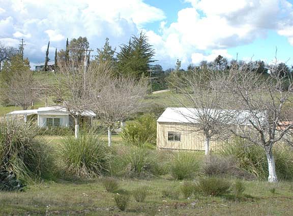 BACK ON THE MARKET! After a one year lease-option that didn't work out this developed property is available. Big views, paved road frontage, walnut orchard, work shop, and two older mobile homes. Not financial-able but certainly usable while you get ready to build. Easy to see on the top of the hill in Bryson-Hesperia. Road to Hesperia Hall runs along south property line. House size & bathrooms are combined between the two mobiles. Sellers may consider another lease option.