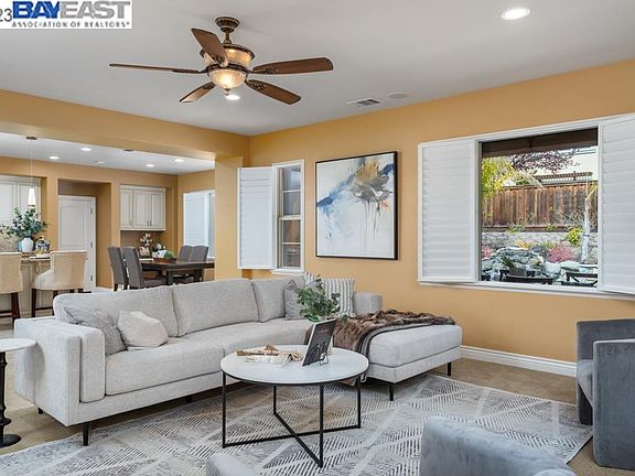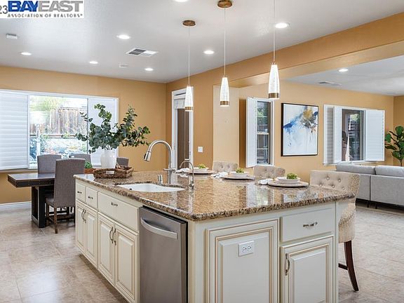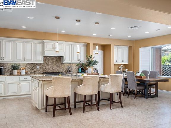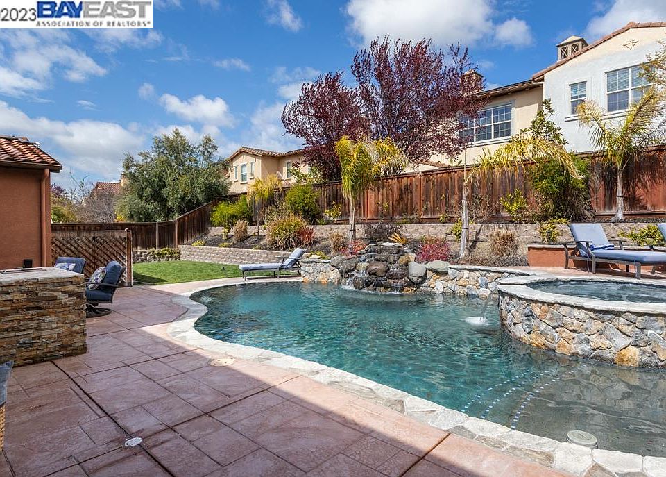 Your dream home is waiting for you in the highly sought-after Santorini Windermere Community! Get ready to be blown away by the backyard oasis, complete with a recently built Solar-Heated Saltwater Pool, Waterfall, Spa, Sun-porch, and Built-in Gas BBQ - perfect for relaxing and entertaining. Inside, this stunning residence boasts top-of-the-line upgrades, including exquisite tile flooring, slab granite countertops, and an oversized island in the gourmet renovated kitchen. The first floor includes a spacious bedroom suite, ideal for multigenerational living, while the second floor features a flex-room with a large balcony offering breathtaking mountain views. The oversized primary bedroom includes a luxurious bathroom and a custom walk-in closet. Plus, save energy with fully-owned solar panels for both the pool and home, and a quiet-cool whole-home fan for added comfort. Don't miss this incredible opportunity to live in luxury in one of the most desirable communities in San Ramon!