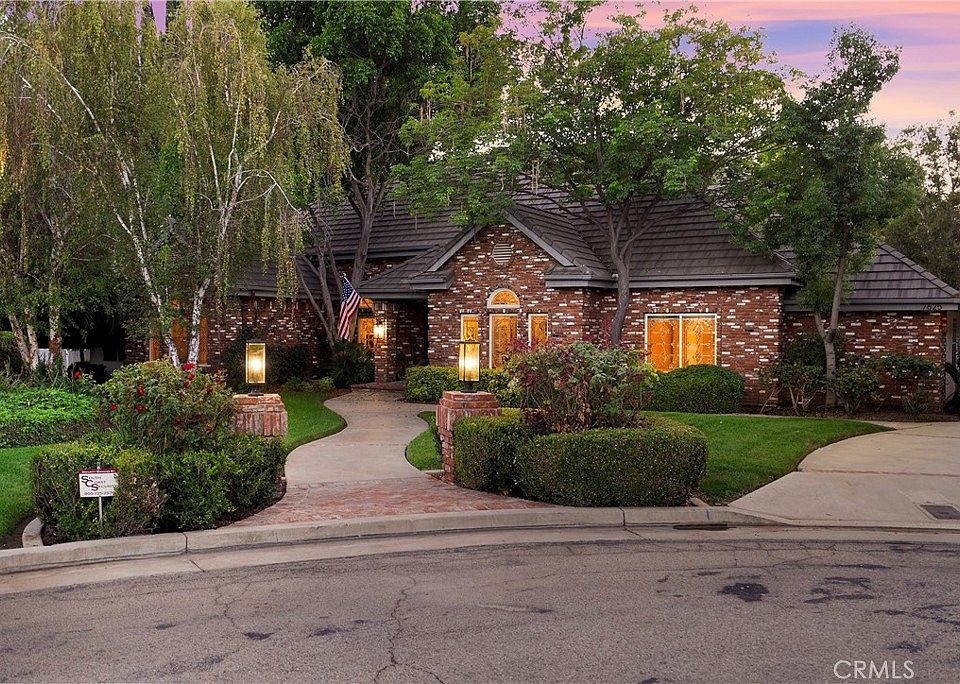 ALESSANDRO HEIGHTS- "WHITEGATE" Nestled on one of the quietest cul-de-sacs in this highly desirable neighborhood and surrounded by the groves of surrounding properties is this delightfully updated residence custom built by Don Dimanno. This sensibly modern and open floorplan is elegantly wrapped in a traditionally appealing genuine used-brick exterior with leaded glass windows and surrounded by mature sheltering trees. Upon entering you are welcomed into the massive Great Room with soaring cedar ceiling and authentic masonry used-brick fireplace; Just off the Great room is the island kitchen, breakfast room and wet bar; The formal spaces are set intimately in the front of the house and split into the large dining room with wood wainscotting, coffered ceiling and elegant chandelier, and the living room with two-sided fireplace shared with the adjacent library/den; The owner's suite is set all by itself in one wing of the house with large walk-in closet, luxurious bath, wool sisal carpeting and a cozy fireplace in the sitting area; The opposite wing of the house contains the additional bedroom suites, all unusually large in size, one with a private ensuite bath and the others sharing a Jack and Jill bath each with a private sink and custom built-ins. The bonus room is located above the 3-car garage and offers limitless possibilities to be converted to a home office or an ADU with separate entrance or used just as the current owners use it...a game room and storage space. The back of the house enjoys views of the private pool/spa area which provides ideal outdoor entertaining space enhanced by the music of the bubbling waterfall feature; The grounds are beautifully maintained with mature landscaping offering ample areas to meander and enjoy the outdoors! A rare offering in this alluring enclave of just 13 unique custom residences!