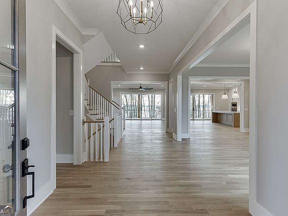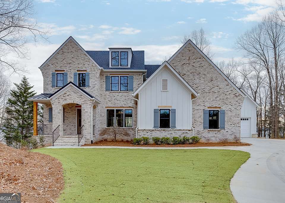 Welcome to 7625 Breeze Bay Road, an exquisite modern farmhouse offering an unparalleled lakeside lifestyle on the picturesque banks of Lake Lanier, Cumming, GA. This newly constructed single-family residence boasts four spacious bedrooms and 4.5 elegant bathrooms, providing ample space for comfort and privacy. Nestled on a generous .58-acre lot, this stunning home greets you with a charming front porch that invites relaxation amidst the serene natural ambiance of Lake Lanier. The interior dazzles with an open-concept design that emphasizes space, light, and luxury. Soaring ceilings and expansive windows create an airy retreat that is both inviting and grand. At the heart of the home lies a sophisticated living area, seamlessly connected to a gourmet kitchen equipped with top-of-the-line stainless steel appliances, a sprawling island, and custom cabinetry. The main-level primary suite offers a tranquil escape, featuring a spa-like bathroom and a walk-in closet, all set against the backdrop of breathtaking lake vistas. The lower level of the home is primed for entertainment and personalization, with ample space for future customization to fit your leisurely pursuits. Outside, the allure of lakeside living continues with a covered brick rear porch, complete with a cozy fireplace, and private access to your dock and beachfront-perfect for boating, swimming, or simply unwinding under the stars. Finished with premium hardwood flooring and chic designer elements, every inch of this home exudes a sense of refined elegance. A three-car garage adds to the convenience and exclusivity of this property. Take advantage of a rare opportunity to own a piece of paradise on the prestigious Lake Lanier.