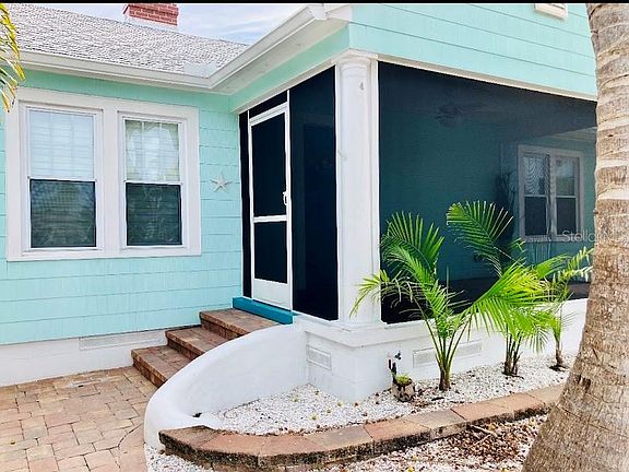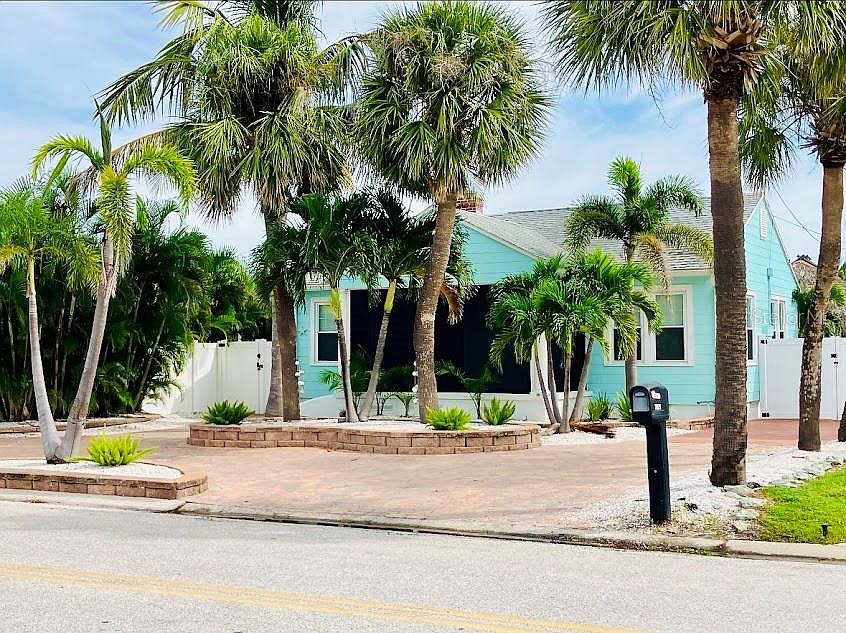 Charming 1936 beach cottage. Property is only 5 blocks to our award winning beaches. Elegant landscaping & new pavers for the circular driveway done 2016. Beautiful original wood flooring in the cottage which has double pane windows, 2020 roof, an additional patio w/outside shower and a backyard. This cozy cottage has a large laundry room w/access to a fenced private patio & another door to the backyard. Living room has the original wood burning fireplace for those cool winter nights. Dining room has built in shelves/drawers. Relax on the screened front porch and enjoy the quiet neighborhood or reside to the patio out back that's great for entertaining. Circular driveway also goes to the backyard which has a gate & is fully fenced. There are small parks with sitting areas 1 block down at 76th & 77th Avenues on the Intracoastal waterway to watch boats traverse the Gulf of Mexico while enjoying the birds soar & the dolphins play (great fishing too!). Fantastic location surrounded by restaurants, community center, downtown St Pete Beach w/library, post office, theater & city hall. St Petersburg, Gulfport, Tampa & International Airports are EZ drives. Whether you want to make this your own humble abode, investment or work/live space this property has it all!