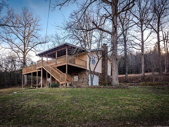 Bear Creek frontage for the perfect location of close to town but private. Come take a look at this 3 bedroom, 2 bath home located on 15.25 wooded acres not far from town. Features a metal roof, and wood & stone exterior. It has a partially covered deck, and is very private, with a potential master bedroom with large walk in closet on the lower level.