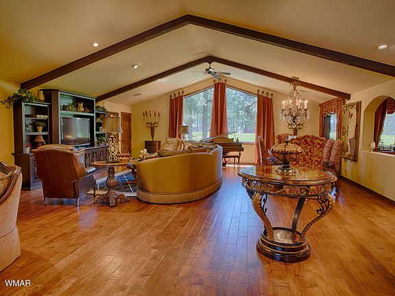 LUXURY Cedar home on .50 +/- acre lot nestled in the tall Ponderosa Pines of Pinetop Country Club. This home has the WOW Factor! Upon entering your eyes are immediately drawn to the massive picturewindows offering panoramic views of the 7th fairway. 4288 square feet, four bedroom , 3.5 bath. Vaulted ceilings throughout the main floor with large dark rustic beams which includes the great room and kitchen. Custom knotty Alder cabinetry, solid knotty Alder doorsand baseboards throughout home and back patio. The great room offers beautiful open entry, large custom slate and corbeled fireplace with cozy open sitting area adjacent to the spacious open family and dining area with a stunning crystal chandelier. The Great Room flows through the archway in to the