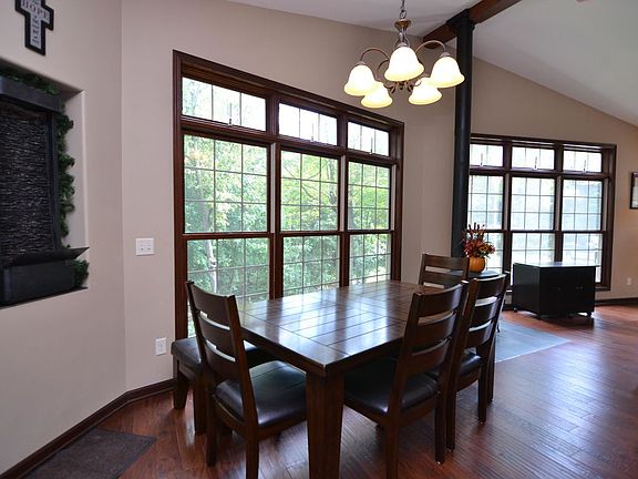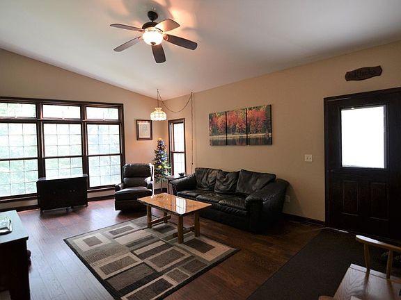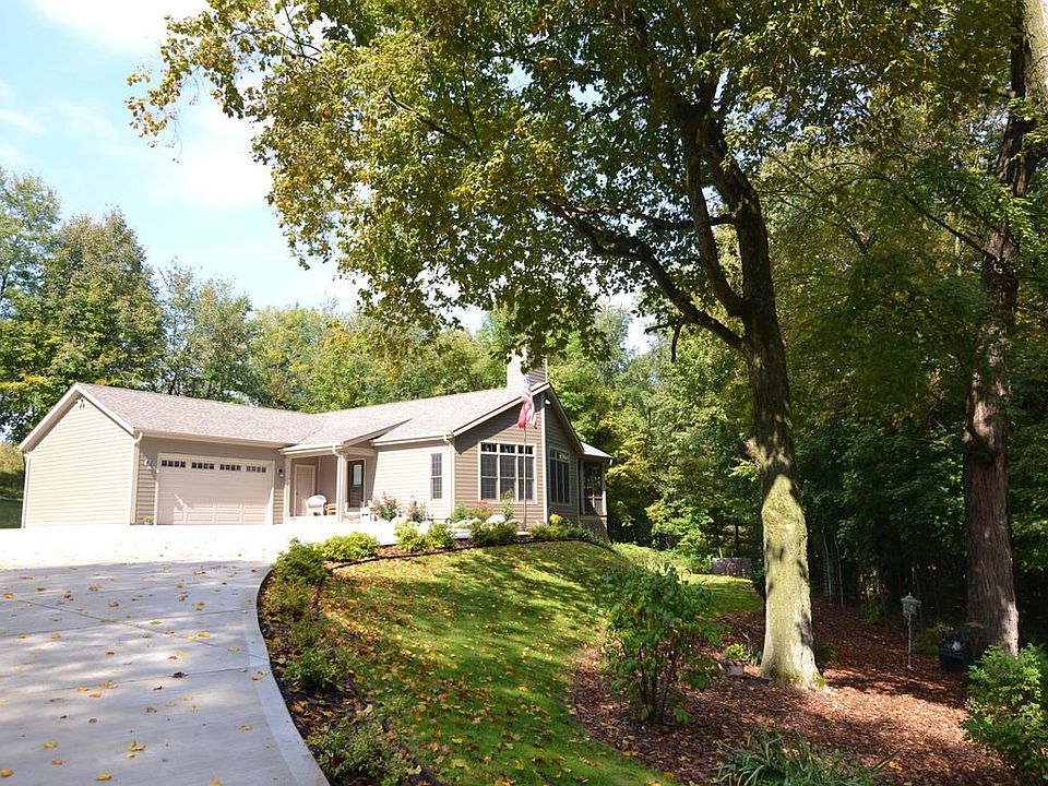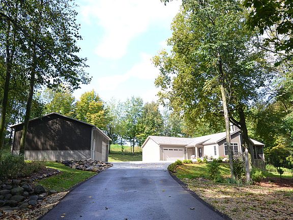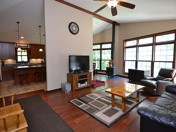 Welcome to your private paradise! Newer custom-built exposed ranch rests on 4.67 wooded acres with natural stream running through. As you enter you'll feel the warmth of the living room offering vaulted ceiling and wood stove. You'll be wowed by the view from the floor to ceiling windows along the living and dining areas. The roomy kitchen offers beautiful cabinetry, a pantry, breakfast bar and comfortable dining area. Off the kitchen you'll find a screened porch with a hot tub overlooking the woods. LL is exposed with 9ft ceilings, access from basement to garage, plumbed for full BA. 2.5 Att. GA and 3.5 Det. GA. New driveway from house to road. The outdoor enthusiast will enjoy the ATV trail throughout the property and the public hunting land across the road. Located 1 mile to Hwy 41