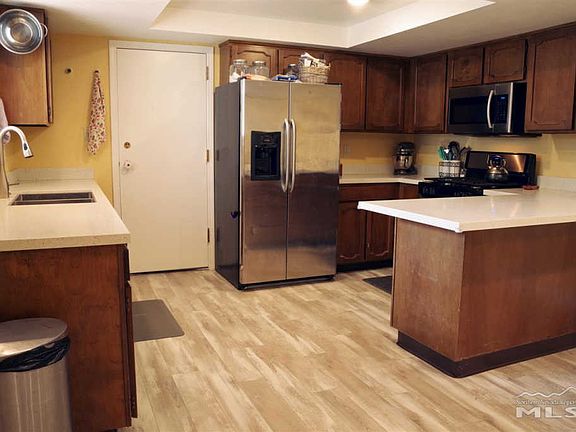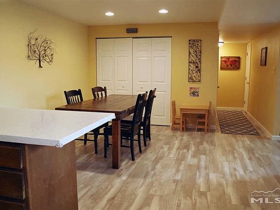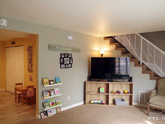The spacious kitchen and dining room also includes a breakfast bar. The front room has a wood burning fireplace, large windows and a slider that opens to the patio. Upstairs, the master bedroom is oversized, wth a slider leading to the deck. Plenty of storage. This lot has an extra parking space in addition to the two car drive. Duel automated garage doors. The front yard has a lovely white picket fence.