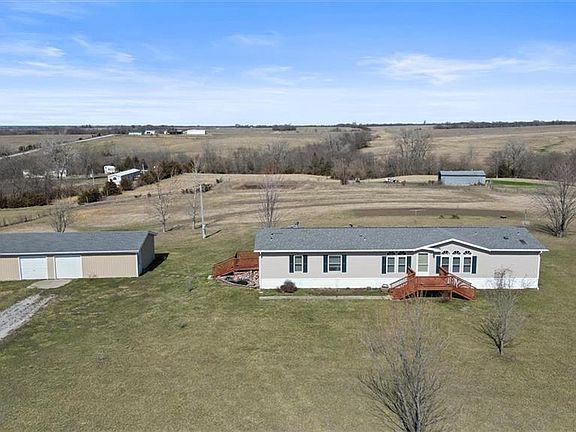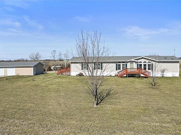 Here is the country setting you've been waiting for!  This 20 acres m/l has a treed setting with a creek in back, a small pond (needs to be widened) a chicken house, clothes line, nice freshly tilled garden spot plus a 30x40  metal hay/implement barn. 26x50  2 car detached garage  offers tons of storage space.   Meticulously maintained 3 bedroom, 3 bath all electric manufactured home has a newer HVAC, water heater, roof, siding on front, skirting, shutters and more!  All 3 decks have been stained plus there is a koi pond for your enjoyment.  Spacious eat in kitchen has a large pantry, center island and includes all appliances.  Washer/Dryer is also included with sale.  Main level laundry room offers extra cabinets for storage and there is also the perfect space for an indoor freezer.  Family room has a woodburning fireplace and leads to bedroom 2 & 3 which each have their own bathrooms and walk in closets.  Inviting formal dining room.   Spacious living room, library/study room, large master bedroom suite includes a walk in closet plus a private bath offering a soaking tub, separate shower, double vanity and linen storage cabinet.  Enjoy the panoramic views from all around.  Located 3/4 mile  from paved road.  Make it yours!