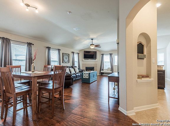 Charming 3bed/2bath in MacArthur Park! Offering a flexible, open floor plan, high ceilings, mainly laminate flooring throughout, and a private, spacious master suite with double vanity sinks, walk-in closet, and an attached sitting room. Upgrades include: SOLAR PANELS, Red Oak Front Entry Door, Cedar Shutters, Cabinet Handles, Bay Window, Upgraded Fans/Lighting. Convenient to Randolph AFB and Schertz-Cibolo Schools. NEW ROOF 9/8/2017!