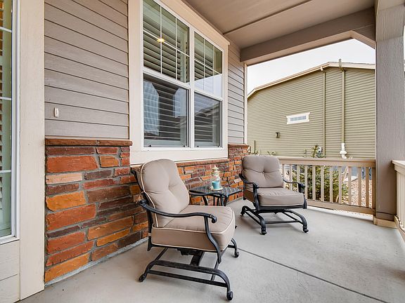 This is an impressive 2 bedroom & 2 bathroom home located in Heritage Todd Creek. Heritage Todd Creek is a 55 plus community on a golf course and provides additional amenities such as a clubhouse, concierge service, fitness center, private pool, spa/hot tub, and tennis courts. The home itself is a gem! Boasts an inviting front porch where you can lounge and enjoy the scenery. An open floor plan with terrific wood floors, a sizeable living room including a cozy fireplace for cold Colorado nights. Upscale appliances, an ample pantry, granite counter-tops, and a beautiful kitchen island in a lovely kitchen. Formal dining room that is perfect for fine dining experiences with friends. Spacious master bedroom with a private master bathroom. A private yard, and a fully covered wooden deck outback. Lastly, this home sits on a premium lot so it has more lawn space than the surrounding homes. You'll adore this home!