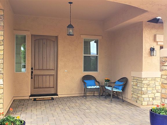 Energy efficient, highly sought-after ''Aspen'' model by Mandalay Homes. Exceeds Energy Star 3 requirement. Highly upgraded: 2x6 construction. Energy savings w Icynene spray foam insulation in ext. walls & catheterized. On-demand A.O. Smith tankless hot water heater and a Fusion XT water softener, and whole house Venmar filtered air exchanger. Insulated concrete slab,Trane gas heating and A/C, CFL/LED lighting. Open concept - dining room, great room and kitchen w granite counter tops. gas range, walk-in pantry. Cognac Birch cabinets throughout home. Stone exterior accents. Over-sized backyard with mature front & back landscaping w apple, almond, &plum trees. Extended-depth garage w rear roll up door to 20x10 pavers. Gazebo/patio. Backs directly to wash behind home. Beautiful sunset views!