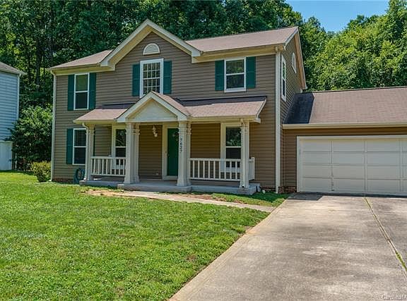 NO HOA in Charlotte!! Large lot over half an acre! Unbelievable! Rocking chair front porch and deck in the back. Located close to shopping, restaurants, highways and more! This 3bdr/2.5bath home has been well maintained. 2015 roof. 2012 HVAC. Newer siding. Newer gutters and downspouts. New windows throughout. Updated flooring throughout. Spacious kitchen remodeled with granite countertops, new cabinets & updated appliances. Formal dining room currently used as an office. Owner's suite has extended shower, tile, and walk in closet. Neutral paint throughout. Hall bath has double vanity and new tile flooring. Ceiling fans. Private and wooded lot has creek at the rear of the property. This gem is a must see. If you're looking for a country feel with room to breathe but close to the city, this is it!