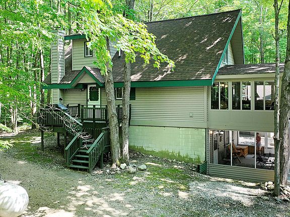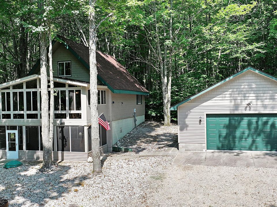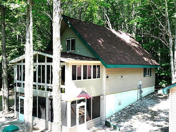 Come see this stunning chalet with three levels of living space. The sunroom was built in 2016, and is the pride of the home with expansive windows and a cozy pellet stove- perfect for watching the snow fall. Nice size bedrooms on each level- two family rooms- and enclosed screened in porch. this home has a lot to offer. The 30x40 stick-built garage, constructed in 2007, includes an enclosed heated room for the snowmobile gear. This truly is a snowmobiler's paradise. Very well maintained home - New drainfiel, new siding& roof installed in 2016. Located in Lakes of the North on three lots with deeded access to all-sports Pencil Lake and all the amenities Lakes of the North has to offer!!! Call today for your private tour.