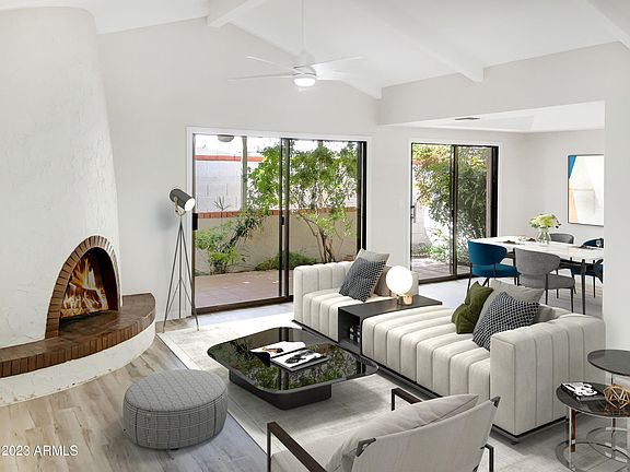 Come see this charming 2 bedroom, 2 bathroom home now on the market! Home was just updated in March, 2023 including: Kitchen renovated with granite counters, updated cabinets and new stainless steel appliances! Along with kitchen updates, the flooring throughout the home is new including plush carpet and luxury plank vinyl. Bathrooms have been updated throughout including a brand new frameless shower in the primary bathroom! Home also has a new roof to give this home the perfect move-in ready feel. Entertaining is a breeze with this great floor plan complete with cozy fireplace. The main bedroom boasts a private ensuite with dual sinks and walk-in closet. Entertain on the covered back patio, perfect for barbecues. A must see in the heart of Scottsdale!