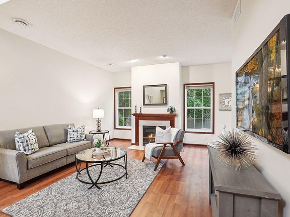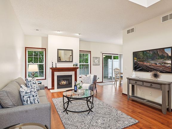 Attractive, well cared for townhome! Freshly painted w/ new carpet! 2-sty ceiling gives the home an uplifting, spacious feel! LR, DR & Kit flow together as an inviting gathering space. Gas FP & tasteful wood-look flooring are standout features. South facing patio door brings in great natural light. Kit boasts cherry stained cabinets, a pantry, stainless appliances & breakfast bar. Powder BA completes this floor. Upper level offers south facing BR & loft. Loft is easy to convert to a 3rd BR. Spacious owner's BR has a super-sized walk-in closet & door to walk-thru BA. A large hall closet w/ rough-ins, could be finished to create a 2nd upper level BA. Freshly painted 2 car garage has easy access to the Kit & main floor laundry rm. Ideal home site - South facing, opening to greenspace & privacy fence. Neighborhood is at Winnetka & Bass Lake Road for easy north-south & east-west commute. Great transit access, too, bus stops on both streets. Hurry on this one!