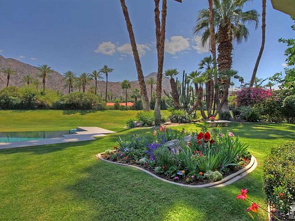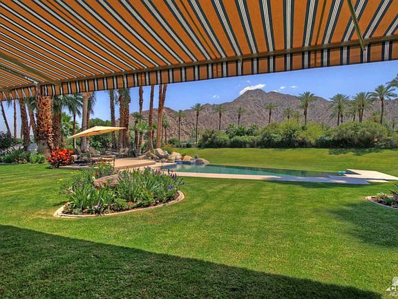 Centrally located in the heart of Indian Wells this custom built 4 bedroom/3 bath home is situated on the highly coveted barranca and enjoys unsurpassed southern mountain views. The spacious floor plan which sits on nearly an acre is ideal for entertaining inside and also outside in the manicured yard with sparkling infinity pool with raised spa and bubbling waterfall. The generous master suite captures the magnificent views through a wall of windows and includes his & her walk in closets. Included is a formal dining room, kitchen with granite counter tops and center island, separate office/study oriented to capture the views with hardwood paneling and cabinets. Other special features include a circular drive way leading to a double garage plus golf cart garage with epoxy flooring, separate exercise room, retractable awnings over the rear patio and a fenced dog run shaded by mature citrus trees. This is your opportunity to be one of the lucky few to purchase a home along the barranca.