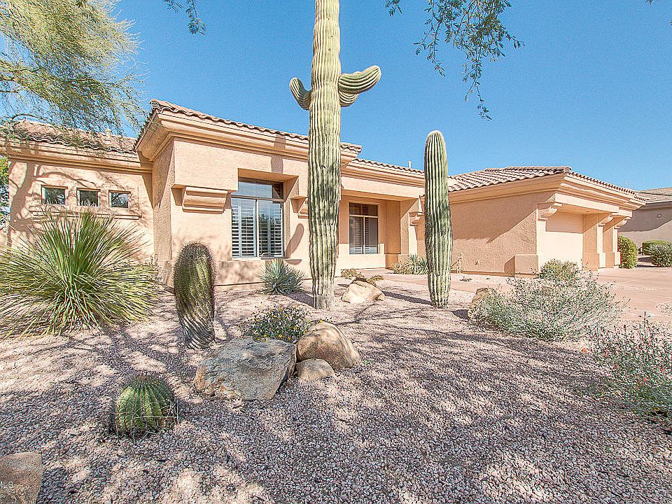PREMIUM, OVERSIZED VIEW LOT BACKING to NATURAL DESERT WASH...PRIVACY++ with panoramic desert views! You''ll fall in LOVE with this 3 BEDROOM plus DEN home located in beautiful & prestigious Pinnacle Reserve East. Enjoy the SPACIOUS GOURMET KITCHEN updated in 2012 with tons of CABINET space, STAINLESS STEEL APPLIANCES, GRANITE COUNTER TOPS, and DOUBLE OVENS. TILED FLOORS in all the right places. HUGE picture windows provide TONS of NATURAL LIGHT throughout the home. You''ll love the cozy GAS FIREPLACE on chilly desert nights. You can''t miss the ENORMOUS MASTER BEDROOM with DOUBLE SINKS and SEPARATE SHOWER and TUB in the master bath! The PEBBLE TECH POOL in the backyard is perfect for cooling off on a warm day. You''ll love living in this private retreat in a wonderful community!