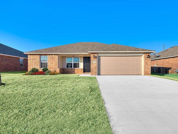 Open concept, kitchen/dining area and living room! Mother-in-law split floor plan! Over-sized master closet! large pantry and laundry room storage spaces! Linen closets and coat closet for more extra storage! 2-10 Warranty! Post tension foundation! Full sod front and back yard! Charming landscaping! 2 car garage and storm shelter-ready!