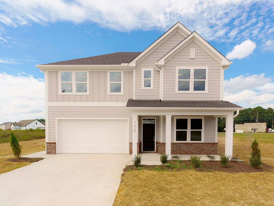 Now including $10,000 in closing costs with builder's preferred lender! Welcome to 7628 New Sandy Hill Church Rd, where timeless craftsmanship meets modern comfort on nearly an acre in the Rock Ridge School District. This 4-bedroom, 2.5-bath Hickory plan offers an open layout with 9-foot ceilings, stylish LVP flooring, and a gourmet kitchen featuring granite countertops, stainless appliances, and a large island—perfect for gatherings. The versatile flex room on the main level is ideal for work or play, while the spacious primary suite includes a fully tiled shower, double vanity, and large walk-in closet. James Hardie siding, classic brick accents, spray foam insulation, and a covered back porch add lasting value and comfort. Enjoy peaceful country living with easy access to Wilson, Zebulon, and Raleigh.