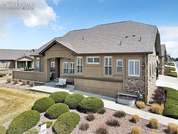 Discover this beautifully renovated, low-maintenance townhome in the highly sought-after Indigo Ranch community—ideal for a lock-and-leave lifestyle. Perfectly situated near the amenities of Powers Boulevard, this spacious home offers effortless main-level living, an open floor plan, and a generously sized finished basement. The chef’s kitchen is a true highlight, featuring slab granite countertops, a Samsung induction cooktop, and custom cabinetry with pull-out storage. Refinished hardwood floors extend throughout the main level, complemented by elegant plantation shutters. A dedicated office space with built-in shelving makes for a perfect home workspace or personal library. Additional features include abundant natural light, a freshly painted interior, a brand-new hot water heater, an upgraded Class 4 shingle roof, and beautifully updated bathrooms. The home also boasts a spacious laundry room and a convenient two-car garage. With style, comfort, and easy living in mind, this townhome is a must-see