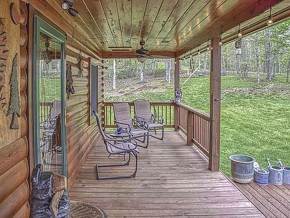 The BEST Turn-Key Ready Log Home on the market today! Immaculate Condition with loads of extra features. Interior Features include 2 Bedrooms, 2 Full Baths, Laundry/Mud Room, All Wood Interior with 12 inch knotty pine floors and Vermont Casting Wood Stove. 2 Mitsubishi Mini-Split Systems, Anderson Windows, six panel Solid Wood Doors and quality built-in shelves underscore the quality and condition of this home. Walk out onto your wraparound outdoor living space featuring 256sqft Covered Porch, 416sqft deck for entertaining, and 352sqft privacy deck for that needed quite time. Exterior Features include 5 Wooded Acres of Mature Hardwood, One Acre fenced yard with gates, and Large 30X30 Wood Barn with New 13X30 lean-to additions. Log Home exterior is professionally maintained making this a home you will be PROUD to come home to. Installed high speed fiber optics means you can work from home and enjoy without having to leave. City water. Some of the interior decor is different then the pictures. Optional furniture package available. This property is high and dry. Make Appointment and Make Offer!