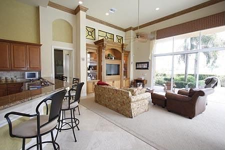 Enjoy amazing sunsets from the pool/patio area-4BR/51/2BA+ handsome wood panelled office. Former model with incredible upgrades-fireplace,wet bar in LR-24" Saturnia floors,view of #13 Legend, circular drive,almost 1/2 acre-Must be seen to appreciate!