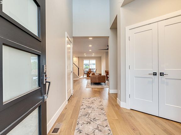Practically brand new modern home in a desirable Wilsonville neighborhood. Knockout entry with soaring ceilings leads to the generous open concept living area with sleek gas fireplace. Spacious modern kitchen features a huge island, state-of-the-art appliances, and an impressive amount of storage. Slider off the dining area opens to the deck and fenced backyard with waterfall and entertaining spaces just waiting for summer fun! All four bedrooms are on the fabulous second level, plus two large bathrooms and laundry. Primary suite includes double vanity, separate shower, freestanding tub, and walk-in closet. Office on the main. Oversized garage with room for cars and hobbies. Engineered hardwoods, stylish fixtures and details throughout. Central location near shopping, dining, parks, and I-5.