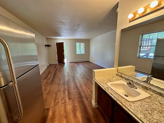 On Scenic, Animas View Drive. Just a few minutes from Oxbow Park, and the Durango bike trail, 5 min from downtown Durango. Smaller property with lots of charm. This unit is a larger remodeled studio. New hardwood flooring. Laundry is on site . Durango Trolley stop is right next to property.