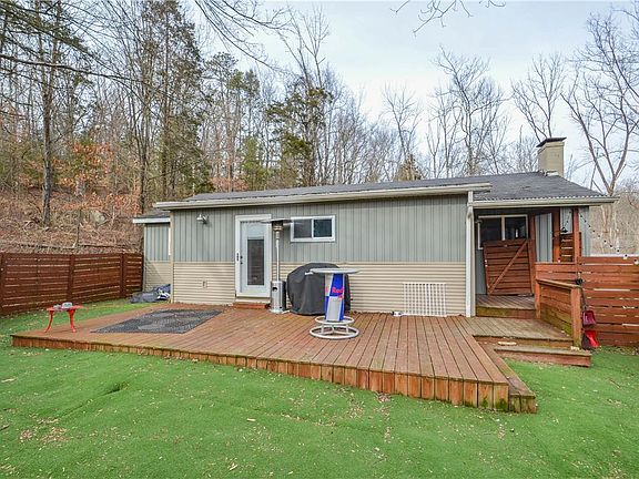Charming 2-bedroom, 2-full bath Ranch style home nestled on a spacious and wooded, 1.6-acre lot, creating your own beautiful oasis. As you enter through the foyer, you'll be greeted by barn-style doors and rustic wood accents, setting the tone for the perfect blend of rustic charm and modern amenities. The expansive open-concept kitchen and dining area offer a welcoming atmosphere, complete with an 8-person table, a cozy pellet stove, and a stunning kitchen featuring quartz countertops and stainless steel appliances. The living room exudes coziness and quaintness, adorned with wood beams, a French door leading to the deck, and a generously-sized walk-in closet. The master bedroom boasts a vaulted ceiling, more wood accents, and an oversized walk-in closet. The attached full bathroom is a retreat in itself, featuring a walk-in tiled shower and a tiled bathtub. Throughout the home, custom light fixtures and sliding barn doors add unique touches and character. Additionally, this home offers convenience with a full main bathroom equipped with a washer and dryer. Step outside to your private sanctuary, surrounded by a 6' privacy fence with turf, providing a perfect space to relax on the deck. For nature enthusiasts, the Godfrey Ridge Trail is just across the street, offering a scenic escape. This gem is conveniently located just minutes from Route 80 and downtown Stroudsburg, making it a commuter's dream in the picturesque Cherry Valley region. Call today for your showing!