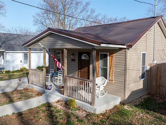 Discover the charm of this beautifully renovated cottage-style home at 763 Barlow Street, Lebanon, MO. Featuring a welcoming covered front porch, this one-level living space boasts a metal roof, vinyl siding, and vinyl windows. Inside, enjoy the sleek gray cabinets, upgraded countertops, and stainless appliances that make the kitchen a standout. The wooden privacy fence encloses a spacious backyard with a storage shed and a covered back porch, perfect for relaxation. Off-street parking is a breeze with a convenient concrete parking pad. Close to top-rated schools and parks, this home offers both comfort and convenience.