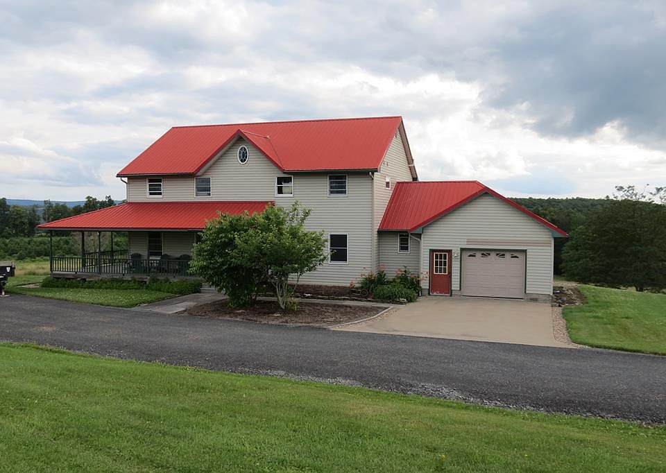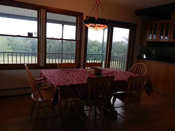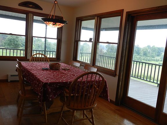 Stunning views from the 4 BR 3 BA home sitting on top of a hill and views for miles in every direction from the 900 sq ft covered deck. This well maintained home has an open floor plan that allows for entertaining, large families & everyone will have with their own space or just enjoy all the room for your collections. 10 acres of the property are certified organic for farming. The full walk-out basement is dry, has been pre-plumbed for a full bath & could be finished for additional living space. Second floor has a very unique lay out that works well for those that work from home now.