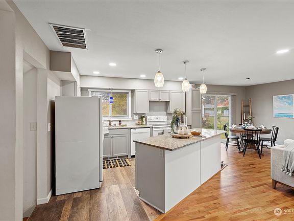 Remodeled Tri-level level home on a large lot! This 3 Bedroom 2.75 Bath is located on a quiet dead-end street within walking distance to the Blaine Harbor and Blaine City Center. Featuring an open main level, new kitchen cabinets with island and back door access to Patio Area. Primary Bedroom on upper level with full bath and walk in closet. Well cared for hardwood floors and luxury vinyl plank throughout the home. Plenty of parking space with a large back yard with endless possibilities, ready to make your own!