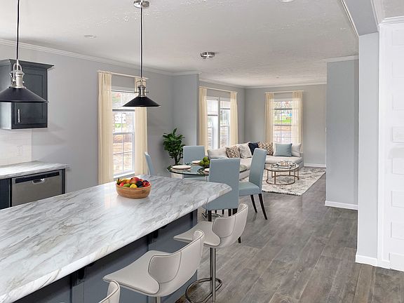 The Annapolis is the perfect entertaining home and the one you will love owning the most when family comes to visit. With over 1508 square feet and a 13-foot vinyl railed porch to match, you will find yourself with plenty of space to match your lifestyle. The one car garage model comes with a front porch and side garage with entry into family room.The open floorplan flows naturally from the living room (with optional tray ceiling) into the dining area and modern kitchen complete with a professional-grade stainless steel Whirlpool appliance package, a work-top island, and farmhouse sink. The kitchen was designed with the cook in mind and especially for those who most like to gather in the kitchen to share in the cooking experience. The oversized worktop kitchen island allows for high top chair seating and even more space for cook or the baker in the home. The master bedroom features a walk-in closet and a master bathroom with a separate lavatory, double vanity sink, stylish trimmed mirrors, one linen closets, and a large shower in the master bathroom with a rain shower head.The two additional bedrooms are situated off the main living room, offer a convenient shared perfect for guests and can easily be converted into a home office, study, or den.